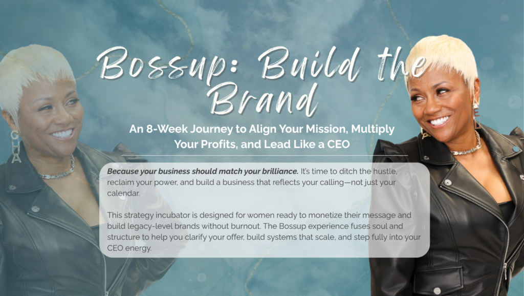 Explore our Boss Up Coaching Program to redefine your version of success, build intentional strategies, and finally build a business that honors who you are becoming—not just what you’re producing.